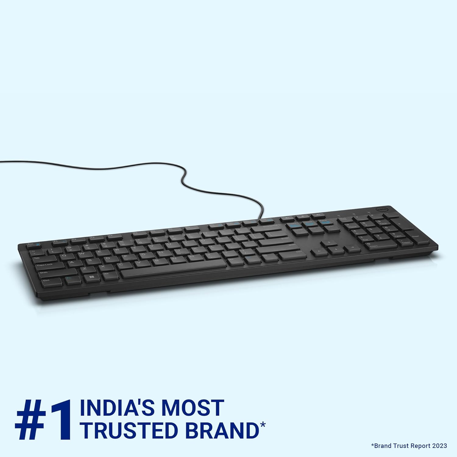 Dell KB216 Wired Multimedia Keyboard – Full-Size Layout with USB Interface, Chiclet Keys, Spill Resistance with 3 Indicator Lights| Plug and Play| Hot Keys: Volume, Mute, Play/Pause, Backward, Forward