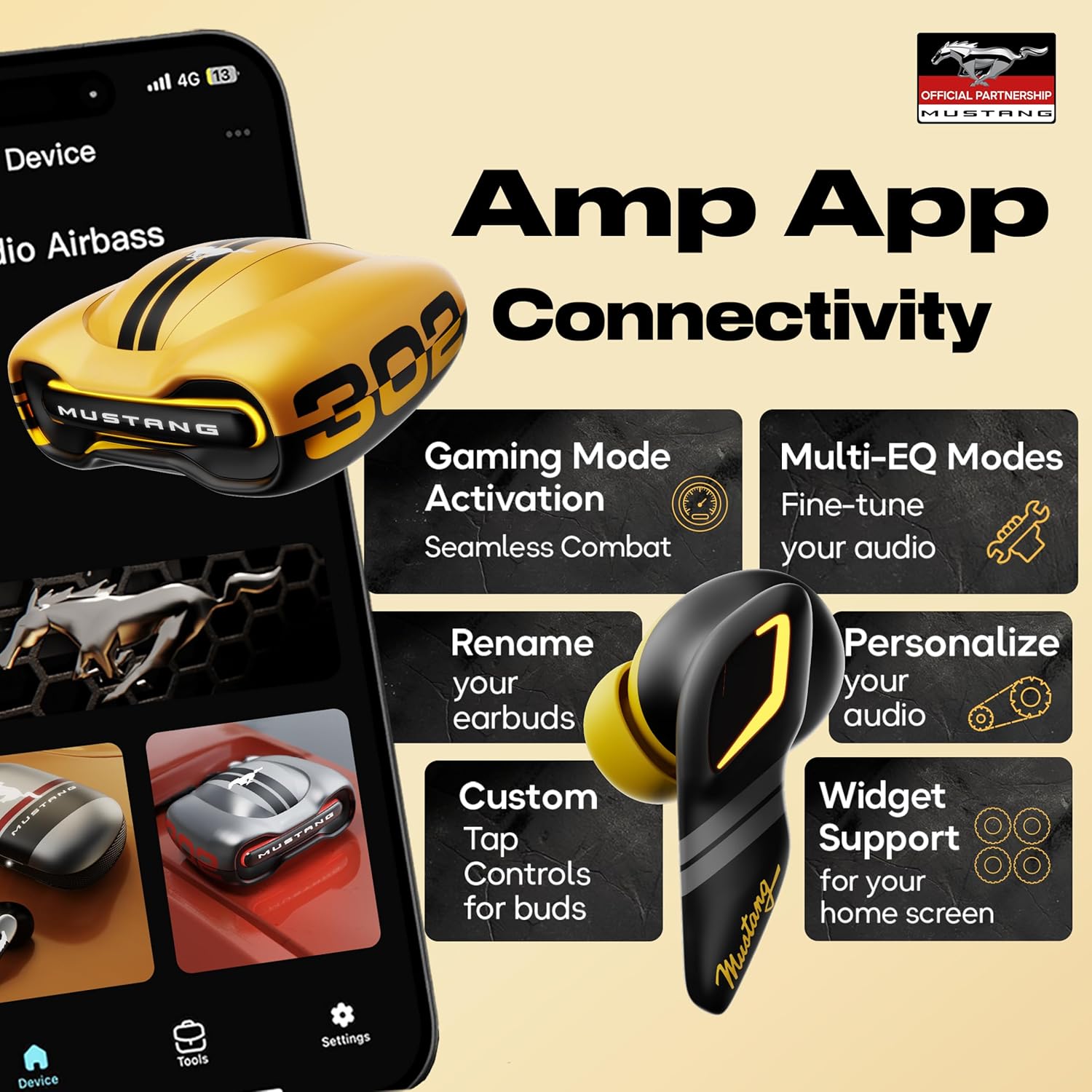 Included Components ‎Extra Pair of Eartips, Mustag Torq Charging case, Mustang Torq Yellow Earbuds, Type-C Fast Charging Cable, User Manual, Warranty Card