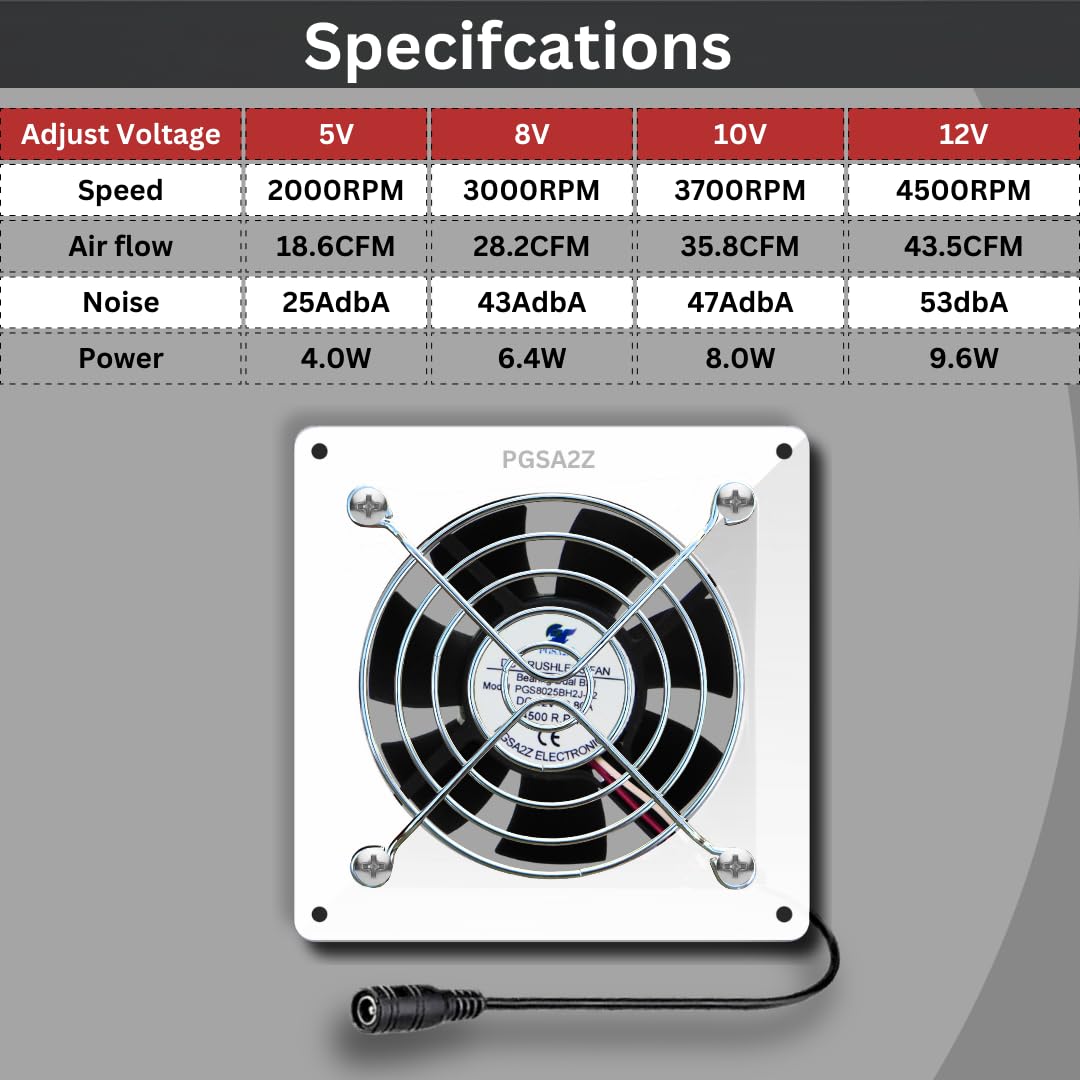 PGSA2Z White 80mm AC Plug Fan (120V/110V/220V) with Adjustable Speed Controller for PC, Doorway, Receiver